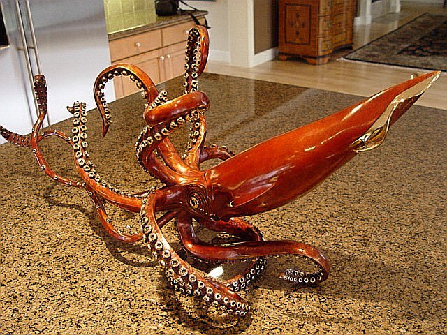 Each unique Giant squid sculpture is created by Kirk McGuire Bronze Sculpture - marine life bronze sculpture -tables