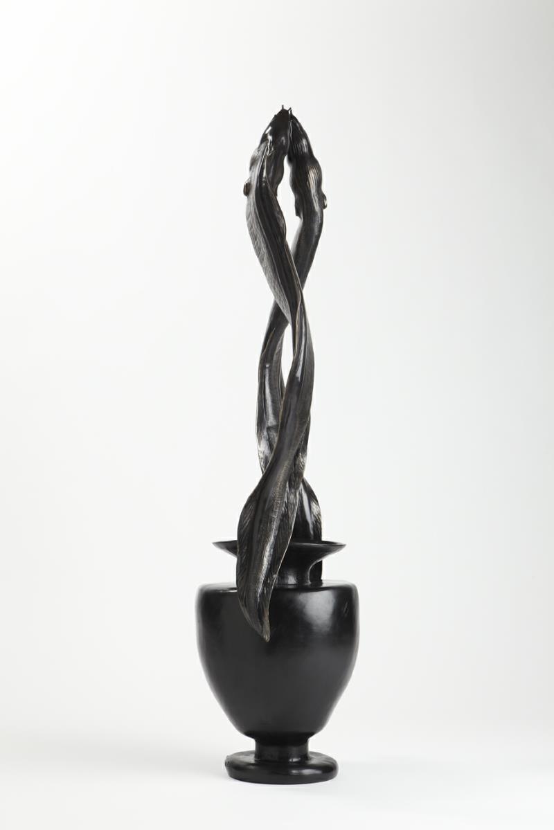Reflecting my fascination with the Bronze Age, the Minoan civilization, and the mythology surrounding the Lost City of Atlantis, the vase design is inspired by a Minoan amphora from 15 BC. The mirrored Mediterranean Moray eels seem to be protecting Atlantis.