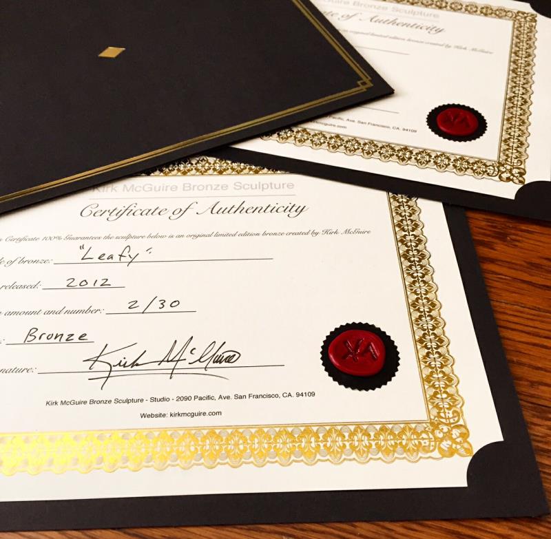 Each bronze comes with a receipt and a hand-signed, wax-sealed Certificate of Authenticity.