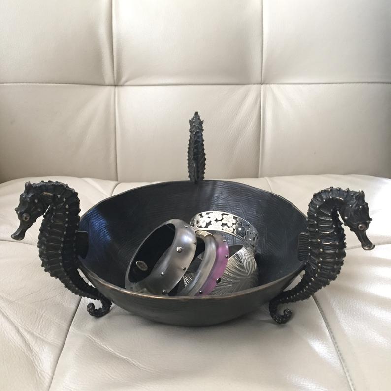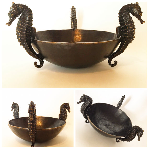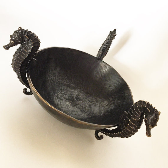 Many who observe this piece in person believe it resembles an artifact found in a museum. The traditional black patina lends this item an 'Old World' appearance. It's perfect for holding your jewelry, wallet, or car keys, or simply as a stylish decoration for your home or office space.